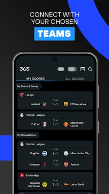 আপনার পছন্দ অনুযায়ী একটি কাস্টম স্পোর্টস স্কোরবোর্ড তৈরি করুন; আপনার প্রিয় দল এবং লীগগুলি বেছে নিন, অথবা যেকোনো ম্যাচ তাৎক্ষণিকভাবে অনুসরণ করুন। 365Scores-এর লাইভ ম্যাচ ট্র্যাকার আপনাকে খেলার প্রতিটি পদক্ষেপের সাথে সংযুক্ত রাখে, এমনকি যদি আপনি সরাসরি দেখতে না পারেন। আমাদের তাৎক্ষণিক ম্যাচের নোটিফিকেশন এত দ্রুত যে, আপনার লাইভ স্ট্রিম থেকেও দ্রুত খবর পেতে পারেন! ক্রীড়া ক্যালেন্ডারের "ALL SCORES" ট্যাবটি বিভিন্ন খেলার সর্বশেষ তথ্যের ভান্ডার, যেখানে আপনি ফুটবল, বাস্কেটবল, টেনিস, ক্রিকেটসহ আমেরিকান ফুটবল, বেসবল, হ্যান্ডবল, আইস হকি, রাগবি এবং ভলিবল খেলার বিস্তারিত সময়সূচী ও ফলাফল একসাথে পাবেন। 365Scores-এর মাধ্যমে খেলার একজন প্রকৃত বিশেষজ্ঞ হয়ে উঠুন।