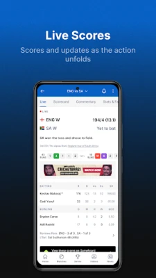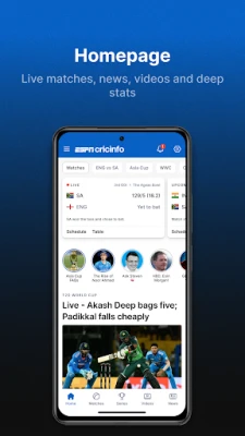 নতুন ESPNcricinfo অ্যাপে ক্রিকেট অনুসরণ করা এখন অত্যন্ত সহজ ও নির্বিঘ্ন। এটি ওয়েব এবং অ্যাপ উভয় প্ল্যাটফর্মে একটি সাবলীল অভিজ্ঞতা প্রদান করে, যা আপনাকে বিশ্বের সবচেয়ে বিস্তৃত ক্রিকেট কভারেজ সরাসরি আপনার কাছে নিয়ে আসে।