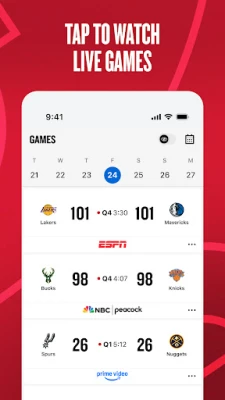 NBA: Live Games & Scores অ্যাপটি NBA সিজনের জন্য আপনার সেরা ঠিকানা। এখানে লাইভ গেম, সর্বশেষ স্কোর, হাইলাইটস, খবর এবং পর্দার পিছনের গল্প দেখুন। প্রিয় দল ও খেলোয়াড়দের ব্যক্তিগত আপডেট পান এবং বাস্কেটবল জ্ঞান পরীক্ষা করুন।