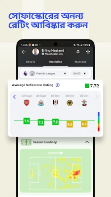 **সফাস্কোর**-এর অনন্য বৈশিষ্ট্যগুলো আপনার ক্রীড়া অভিজ্ঞতাকে নতুন মাত্রা দেবে। পেশাদারদের ব্যবহৃত ৩০০টিরও বেশি স্ট্যাটিস্টিক্যাল রেটিং, খেলোয়াড়দের মূল বৈশিষ্ট্যগুলির ভিজ্যুয়াল ওভারভিউ, এবং ম্যাচের গতিশীলতা বোঝাতে আক্রমণের গতি ট্র্যাক করার বিশেষ গ্রাফ—এ সবই এখানে উপলব্ধ। বক্স স্কোর ও শটম্যাপের মাধ্যমে প্রতিটি বাস্কেটবল ম্যাচের পুঙ্খানুপুঙ্খ বিবরণ দেখুন, যেখানে প্রতিটি পয়েন্ট, অ্যাসিস্ট এবং শুটিং প্যাটার্ন বিশ্লেষণ করা হয়েছে। পাওয়ার গ্রাফের সাহায্যে ম্যাচের প্রবাহ এবং জয়ের মাত্রা পর্যবেক্ষণ করুন, আর হিটম্যাপ দিয়ে প্রতিটি খেলা এবং পুরো মৌসুমে খেলোয়াড়দের চলাচল উপলব্ধি করুন। এছাড়া, হেড-টু-হেড ফিচারের মাধ্যমে দল ও খেলোয়াড়দের অতীতের পারফরম্যান্স তুলনা করে তাদের প্রতিদ্বন্দ্বিতা বিশ্লেষণ করুন। প্রিমিয়ার লিগ, চ্যাম্পিয়নস লিগ, NBA, NFL, ATP, WTA, IPL, UFC, ফর্মুলা ১ এবং আরও অসংখ্য ক্রীড়া ইভেন্টের লাইভ আপডেট সরাসরি আপনার Wear OS স্মার্টওয়াচেও উপভোগ করতে পারবেন।
