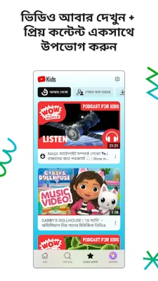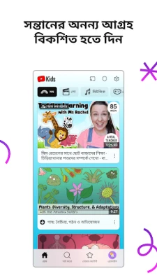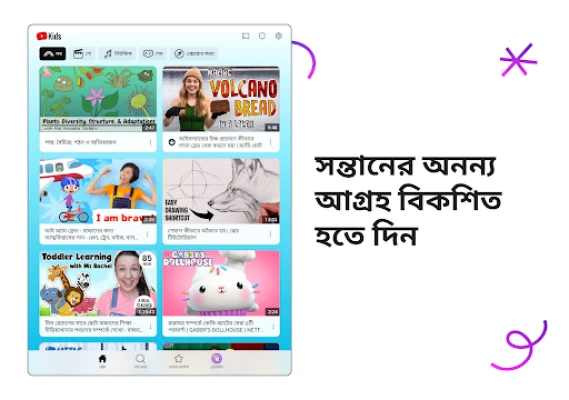 আপনার সন্তানের বয়স এবং আগ্রহ অনুযায়ী সেরা অভিজ্ঞতা নিশ্চিত করতে YouTube Kids দেয় সম্পূর্ণ কাস্টমাইজেশনের সুবিধা। প্রি-স্কুল মোডে আপনার ছোট্ট সোনামণিরা বর্ণমালা শিখতে পারবে, তাদের চারপাশের জগৎ সম্পর্কে কৌতূহলী হবে। যারা কিছুটা বড়, তাদের জন্য রয়েছে মজার কার্টুন, ছড়া এবং বিভিন্ন DIY প্রোজেক্টের সমাহার। আর একটু বড় শিশুদের জন্য, অ্যাপটি জনপ্রিয় মিউজিক ও গেমিং ভিডিওর দুনিয়ায় অবাধ বিচরণ করার সুযোগ করে দেয়। এছাড়াও, আপনি চাইলে শুধুমাত্র নির্বাচিত চ্যানেল বা নির্দিষ্ট ভিডিওগুলোকেই অনুমোদিত করে একটি ব্যক্তিগতকৃত কন্টেন্ট লাইব্রেরি তৈরি করতে পারেন, যা আপনার শিশুর বিকাশের পথে সহায়ক হবে।
